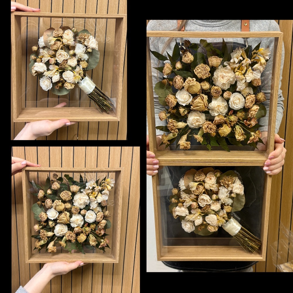Если у вас есть похожая идея или вы также хотели бы сохранить свадебный букет, то мы с радостью обсудим все детали для вас вновь!